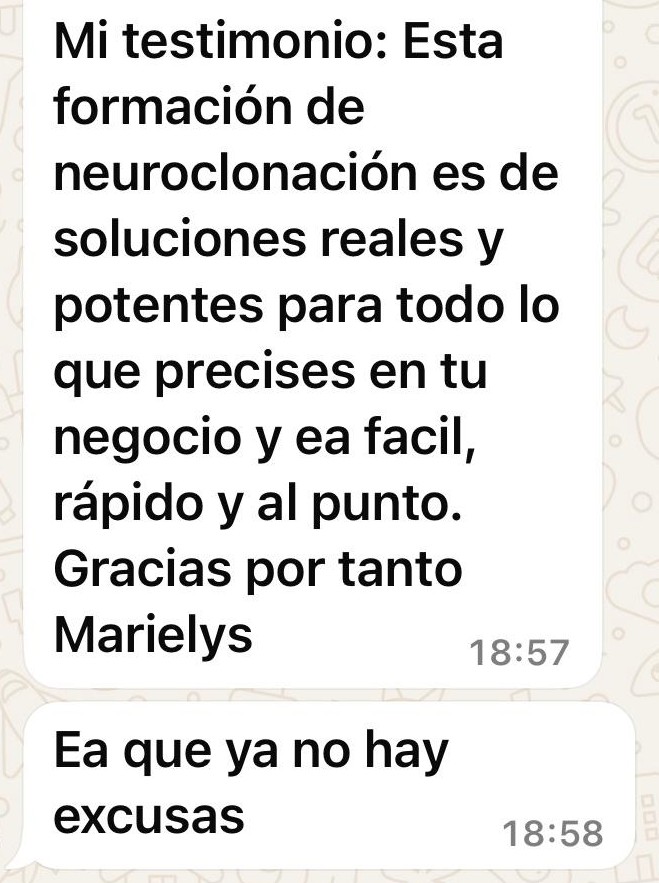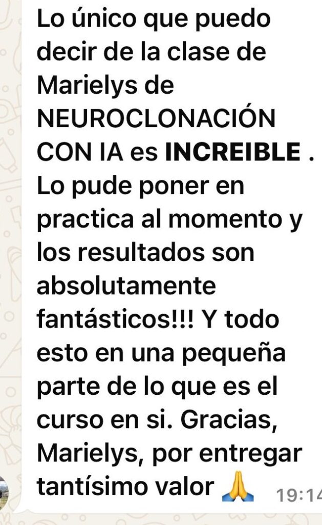 La neuroclonación de consciencias digitales es el sistema que desarrollé para entrenar a tu propia inteligencia artificial con tu tono, tu sabiduría y tu estrategia. No se trata de un prompt. Se trata de una extensión de ti que piensa, responde y vende como tú. Es tu mente operando sin esfuerzo, 24/7.